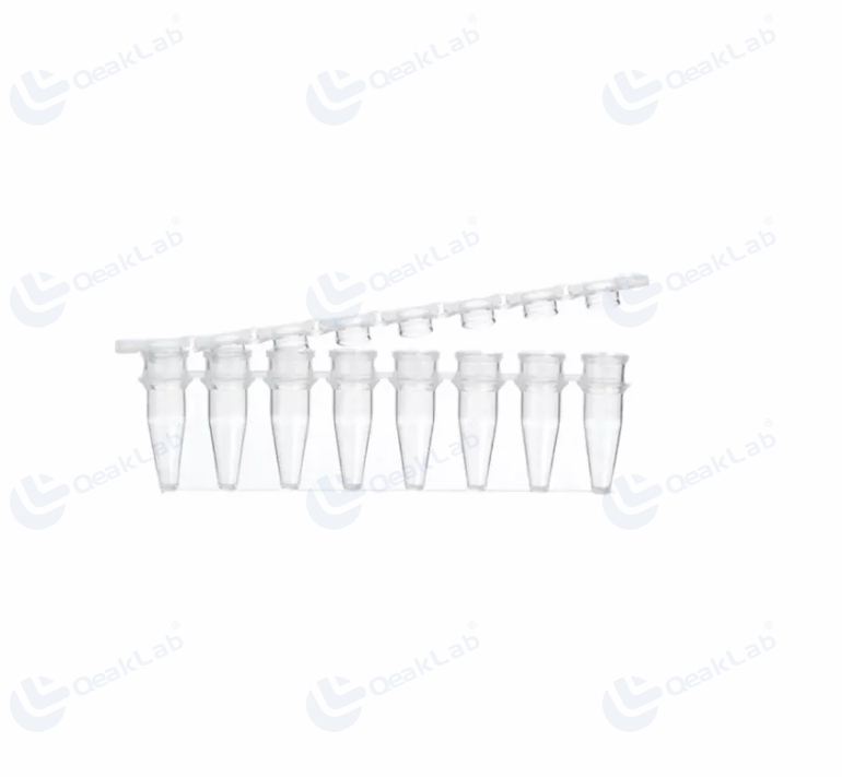 2.0.2ml 8-Strip PCR Tubes,Flat Cap tube wall is thin and the thickness is uniform, and the thermal conductivity is good;