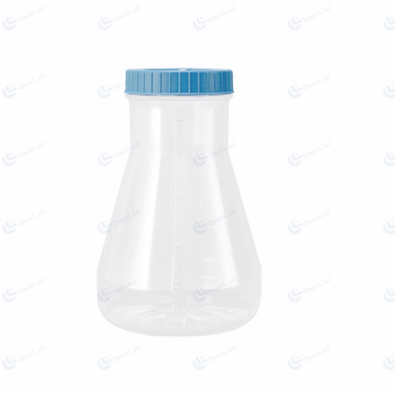 2.8L Erlenmeyer Flask is a special consumable used in cell culture process. It is mainly used to cultivate cells with high oxygen requirements, and can also be used to culture fungi, bacteria, animal and plant cells in suspension. It is ideal for cell suspension culture, media preparation, mixing and storage.